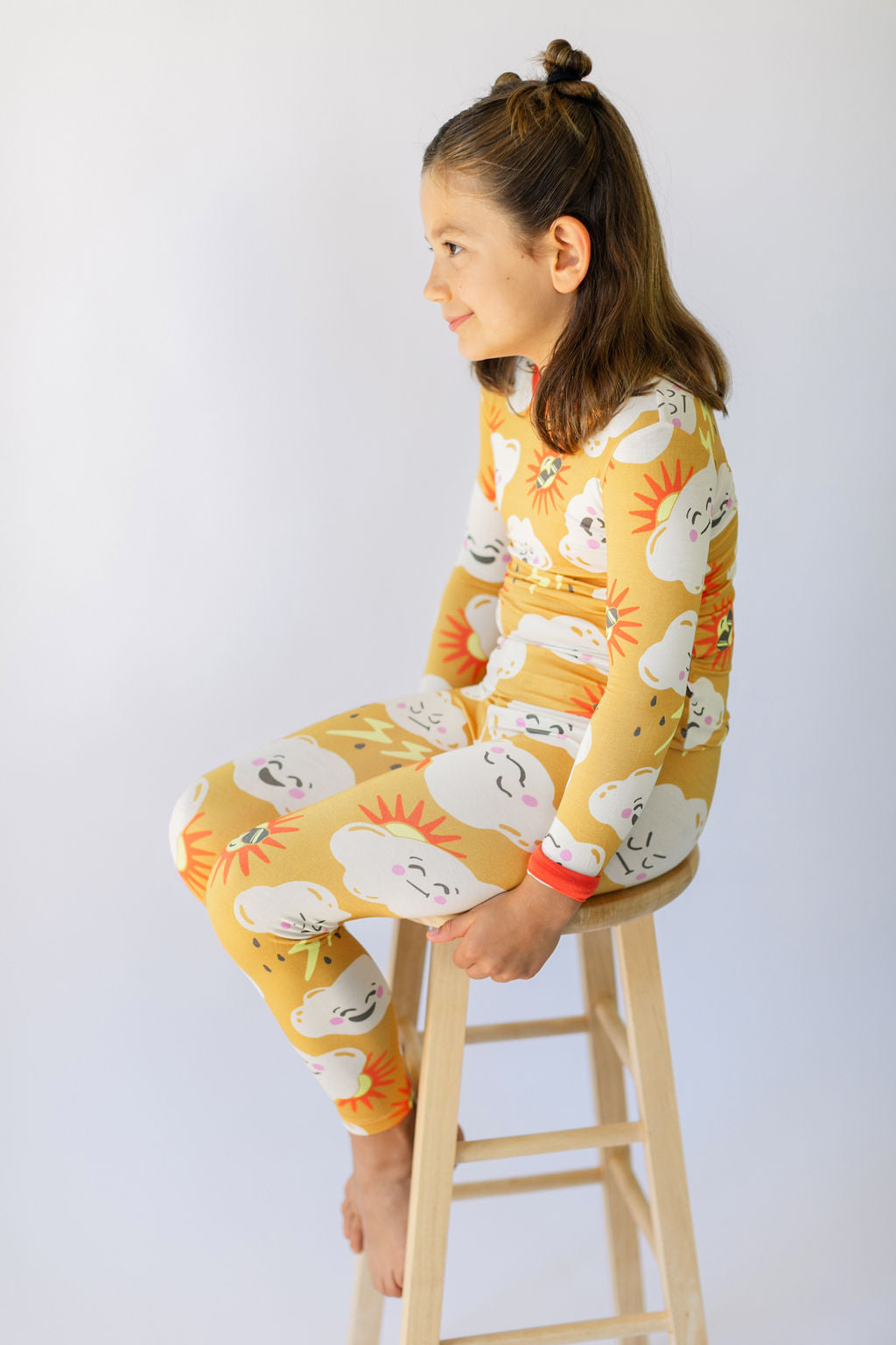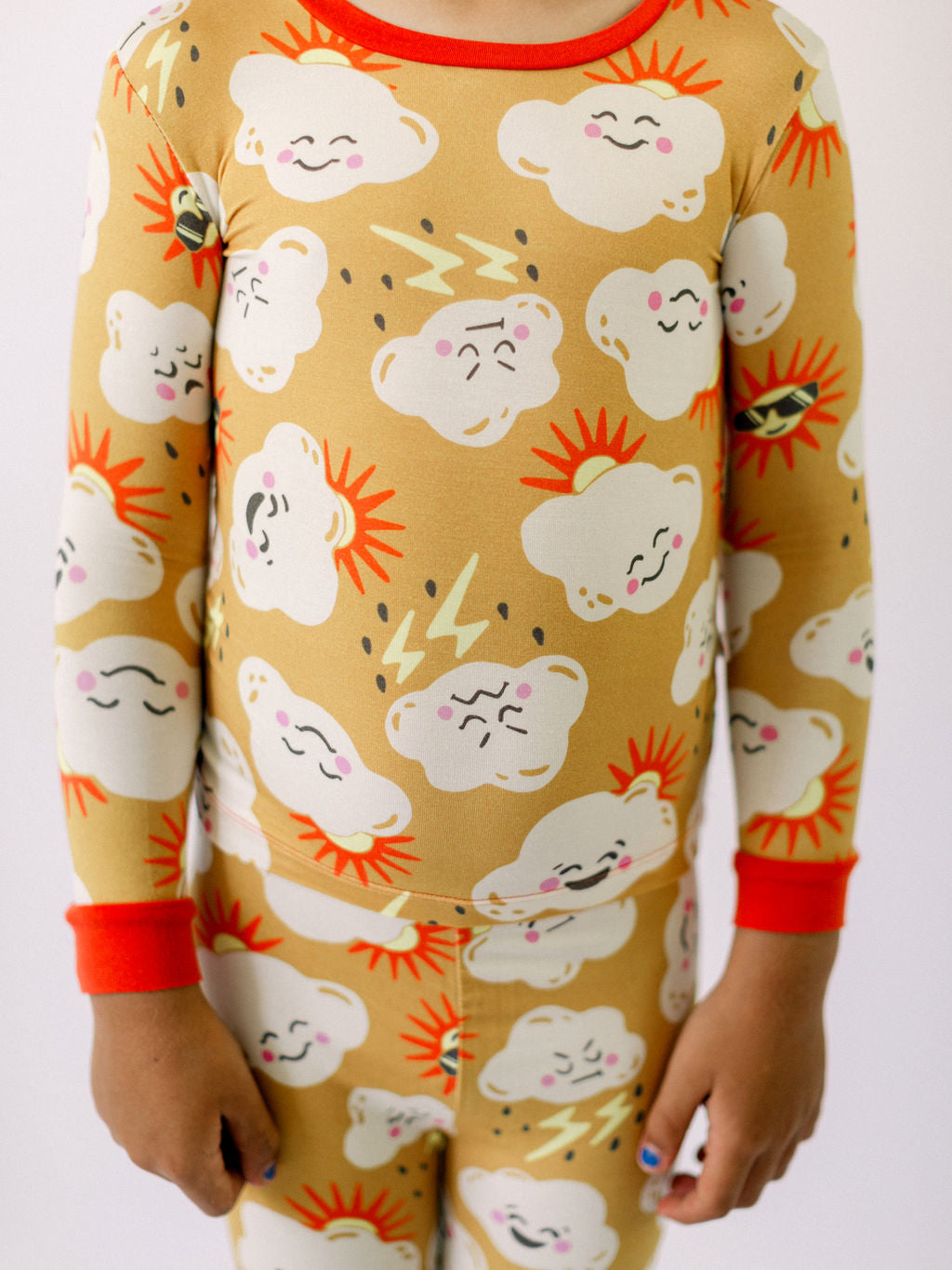 Long Sleeve Pajamas in Gold Thunderclouds