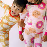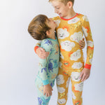 - Gender-neutral two piece pajama sets have a snug fit through body